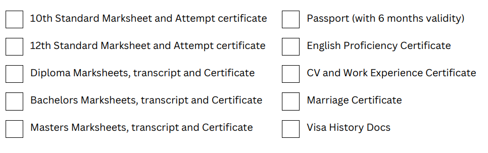 Documents Checklist